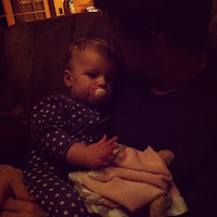 She closes her eyes and nudges her head under my chin. She fidgets for awhile. She strokes her hair, and touches my face. She feels my eye lashes, rubs my face, and slowly quiets her movements. After a tired, final sigh, she drifts away. If I haven't fallen asleep already, I rise and lay her carefully in her crib once more, repeating her bedtime routine.